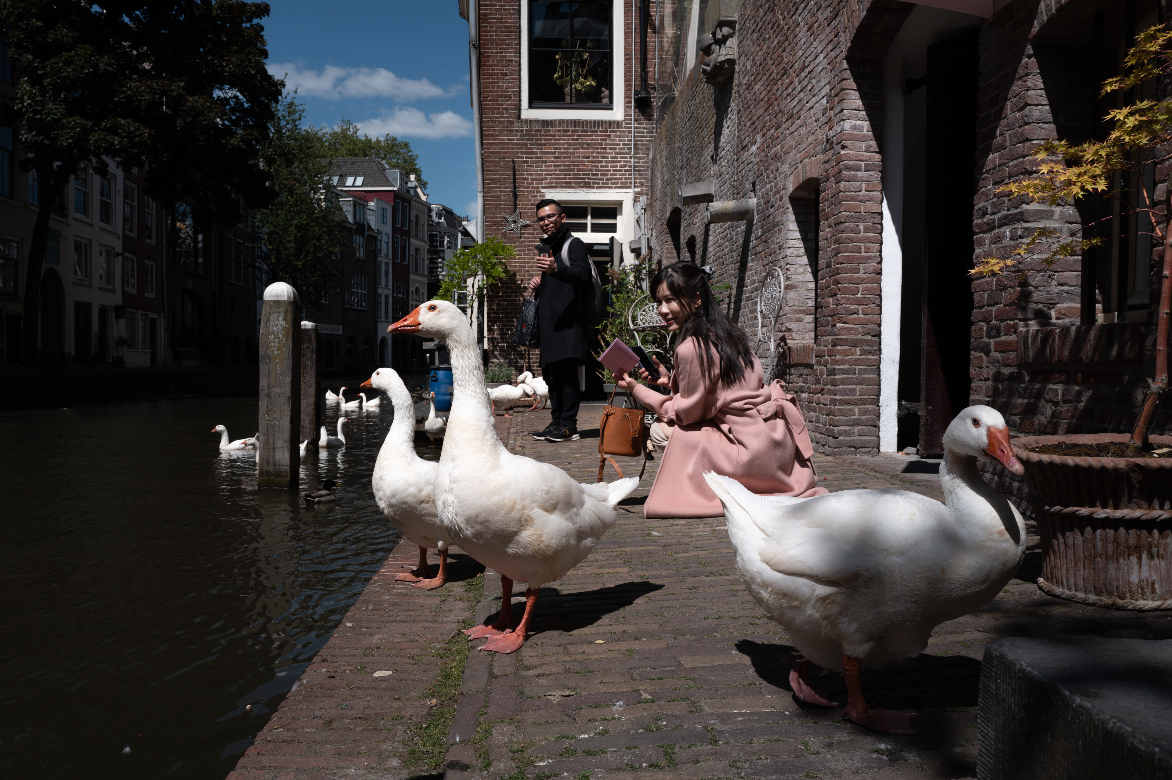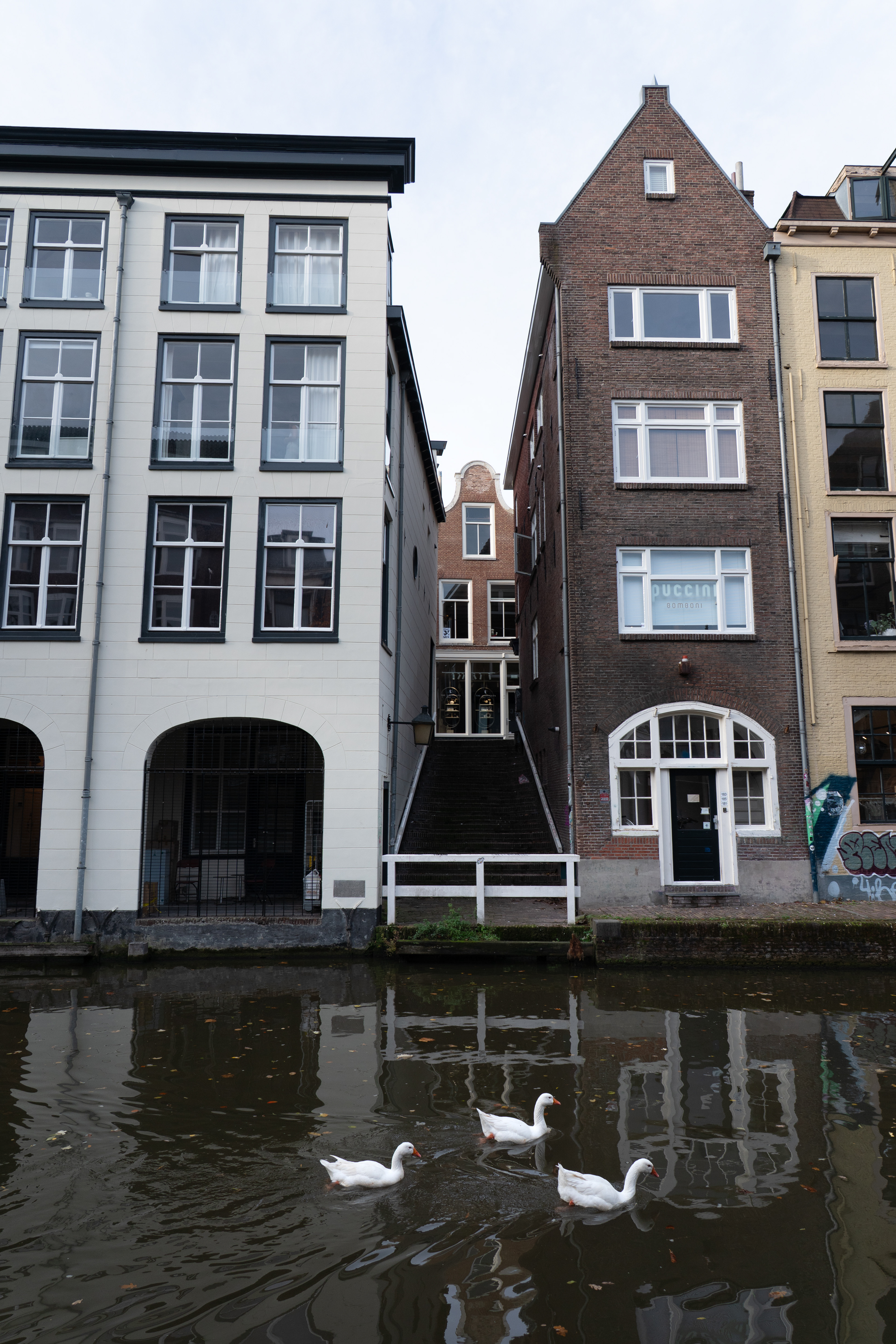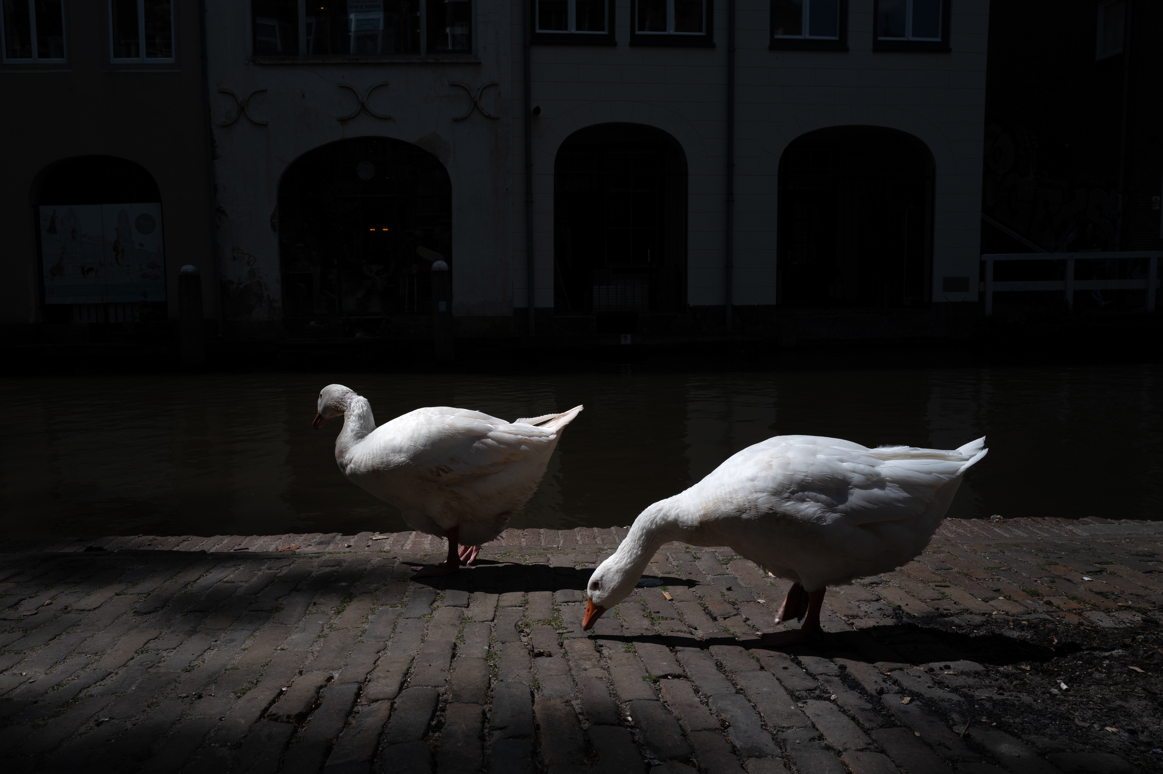 Among these changes, ordinary white geese caught my attention. The wild, white geese living in the historic city centre seemed more present than I remembered, moving through the canals and along the wharfs of the Oudegracht. They are visible throughout the day, sharing space with residents, tourists and business owners.