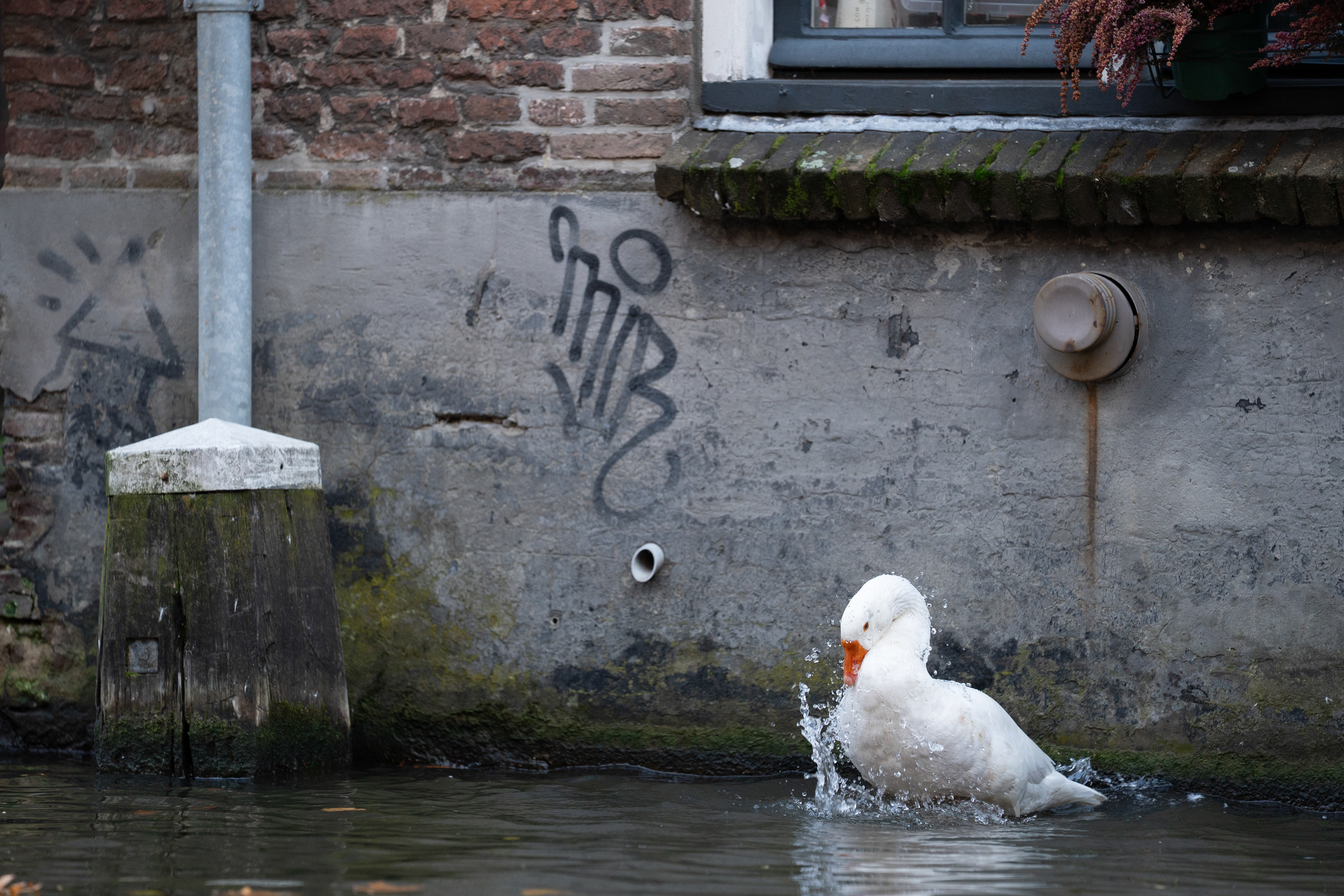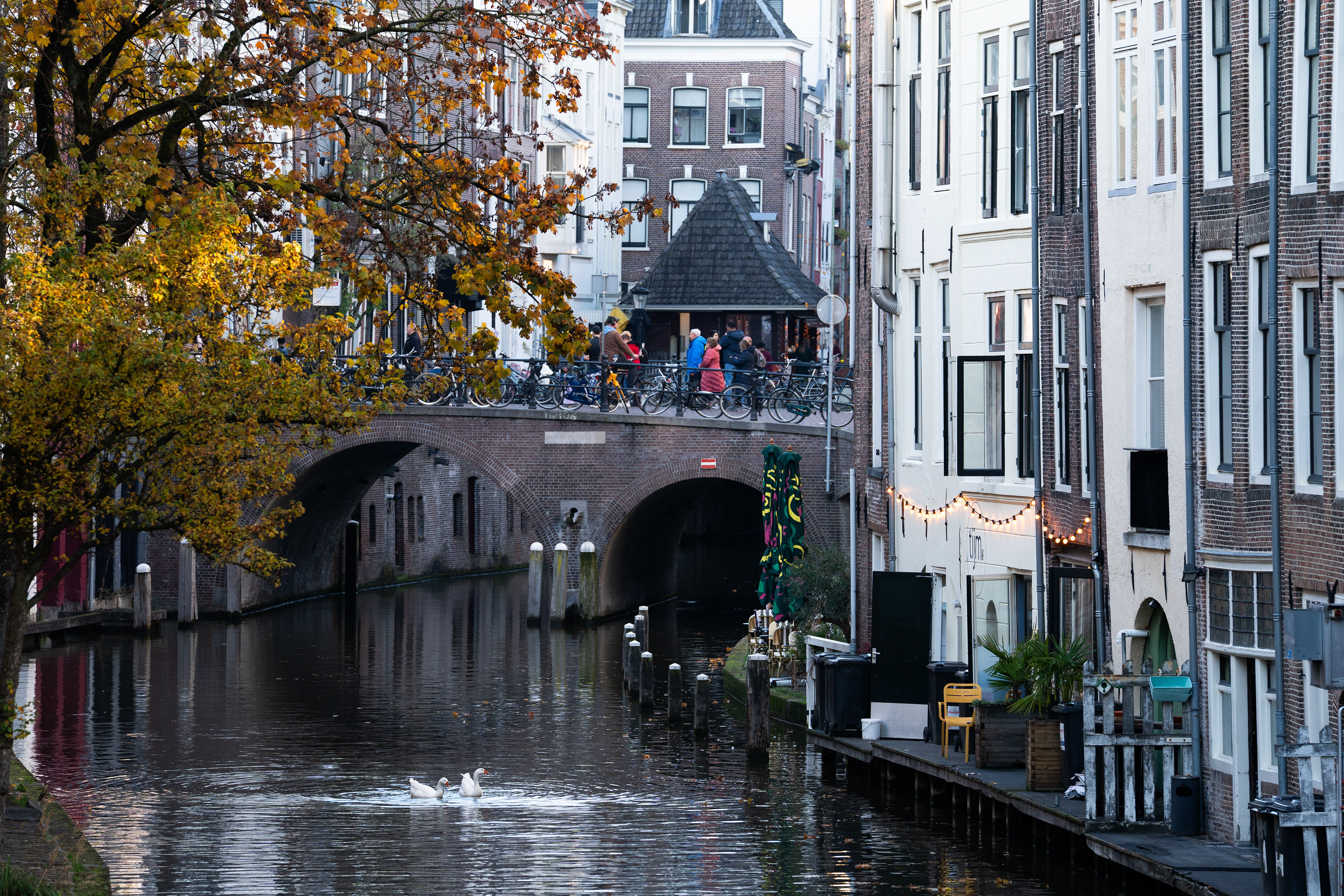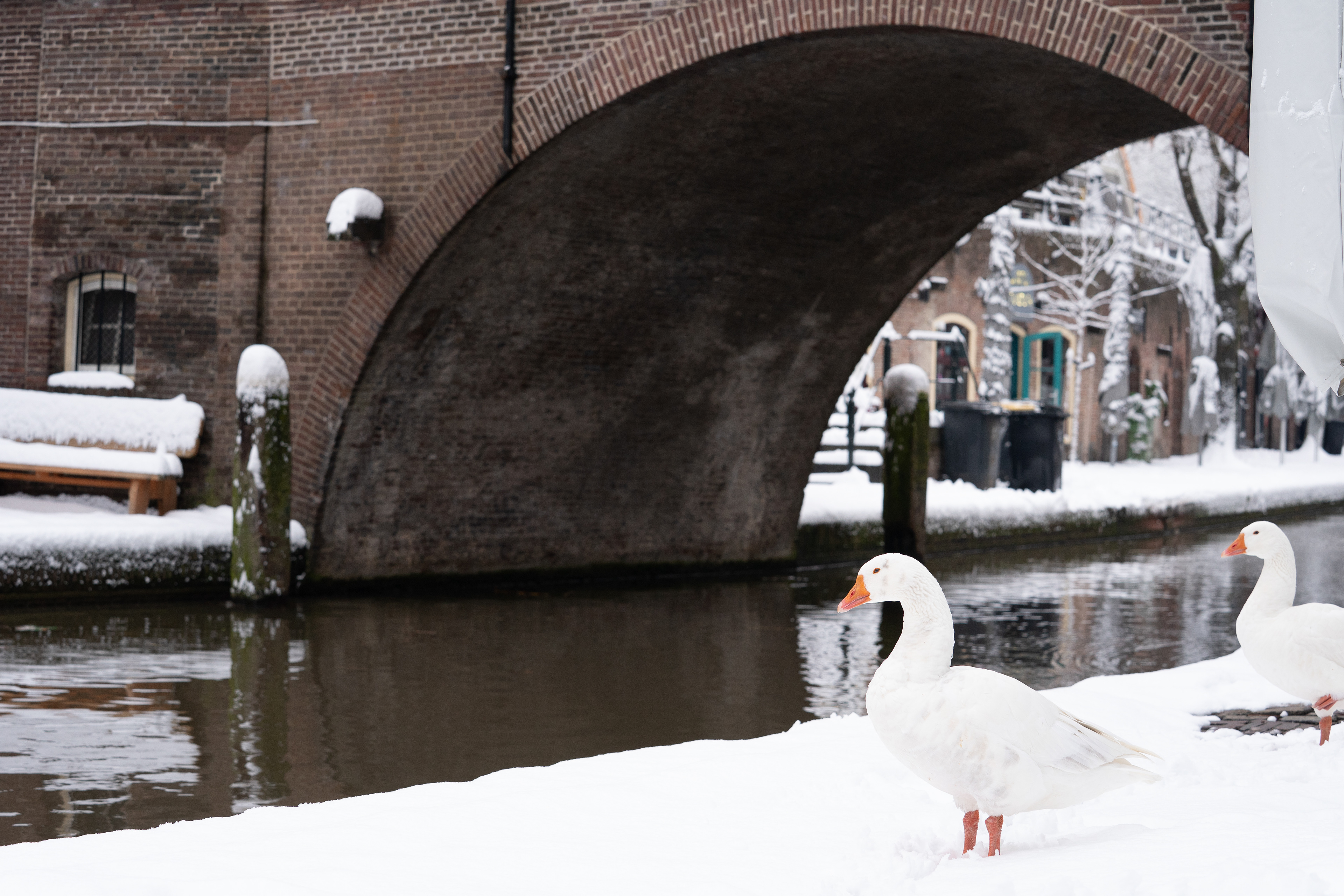 Among these changes, ordinary white geese caught my attention. The wild, white geese living in the historic city centre seemed more present than I remembered, moving through the canals and along the wharfs of the Oudegracht. They are visible throughout the day, sharing space with residents, tourists and business owners.
