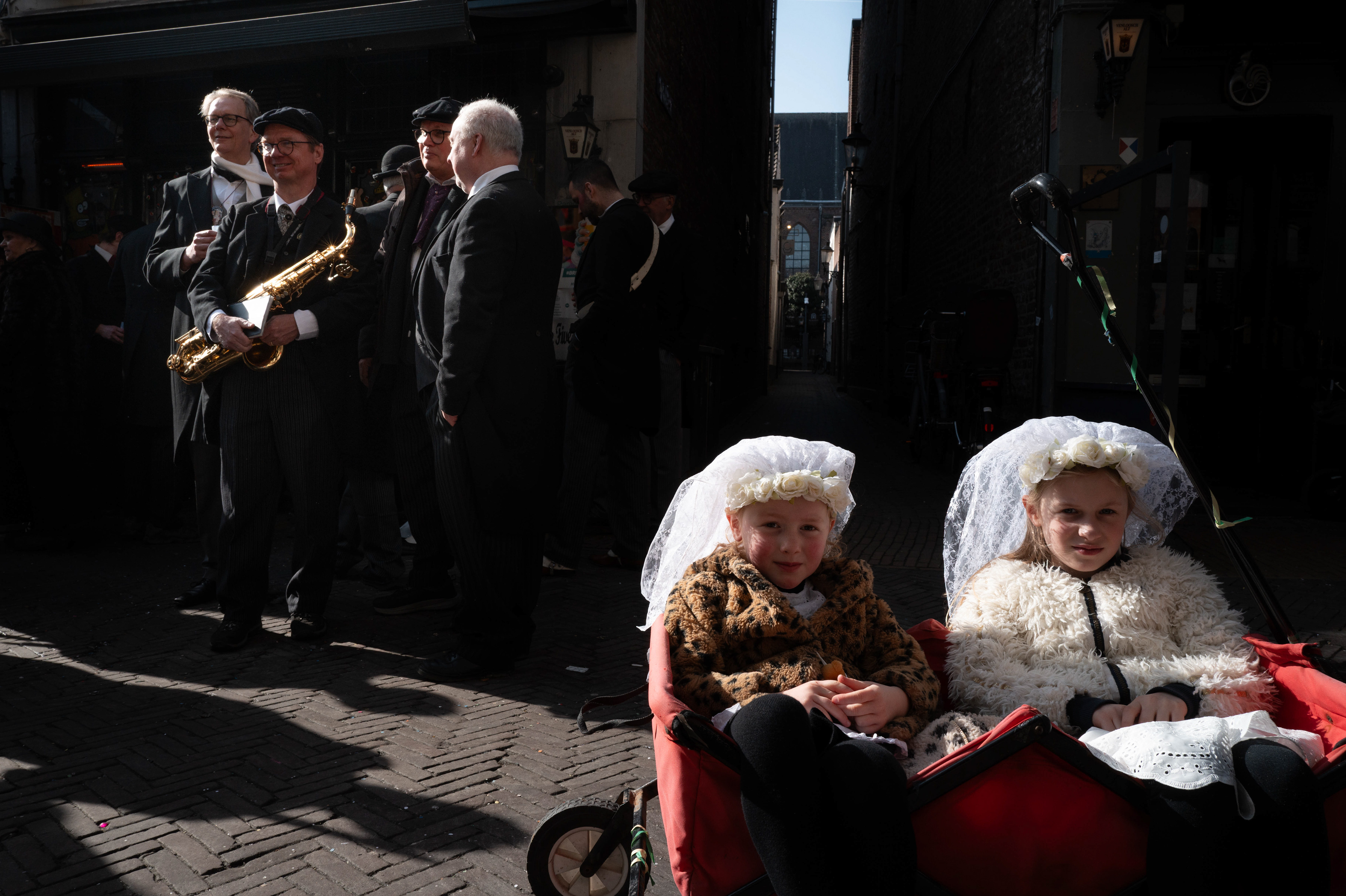 This photo series documents the Boerenbruiloft as it is celebrated every year on the last day of vastelaovend in Venlo. Colourful, lively, and carried by a strong sense of local pride. A “mock wedding” full of humour and symbolism, passed down through generations and rooted in the community. It is also a deeply family oriented celebration. Parents bring their children in decorated handcarts, and kids roam the crowded city centre as if unsupervised, yet the strong sense of community lets everyone feel at ease. For many, this day feels self-evident. That is precisely why it matters to photograph it as living heritage. The images show more than celebration. They reveal how play and tradition meet, and how community takes shape through gestures, costumes, and music.
